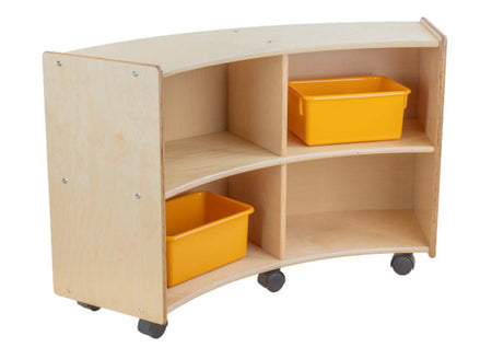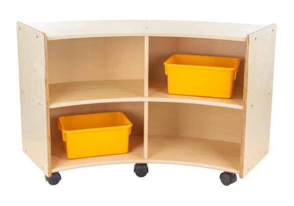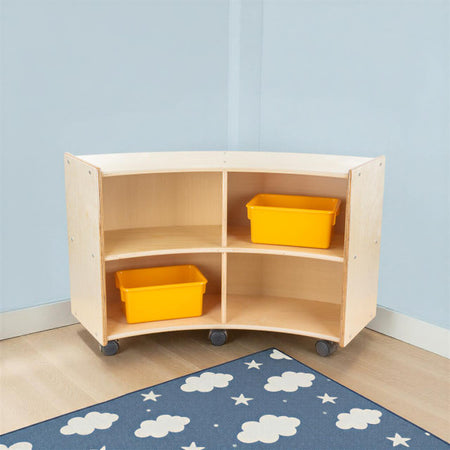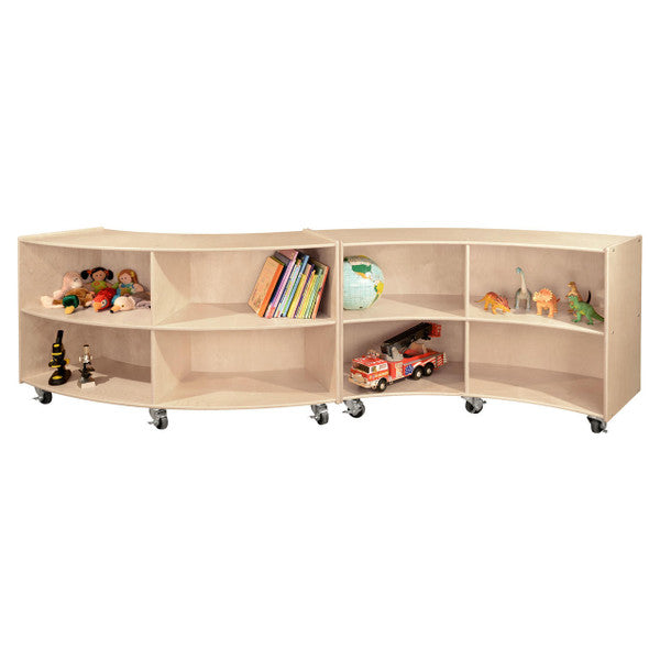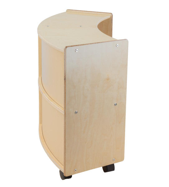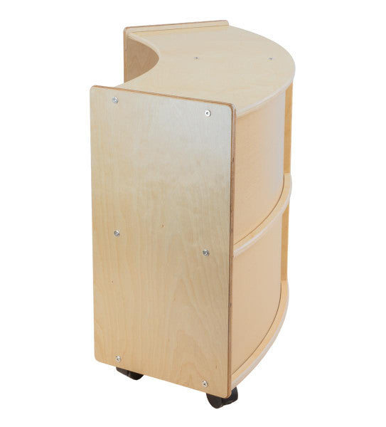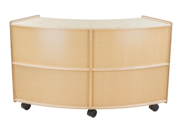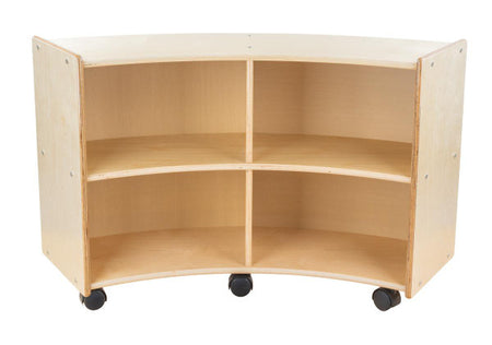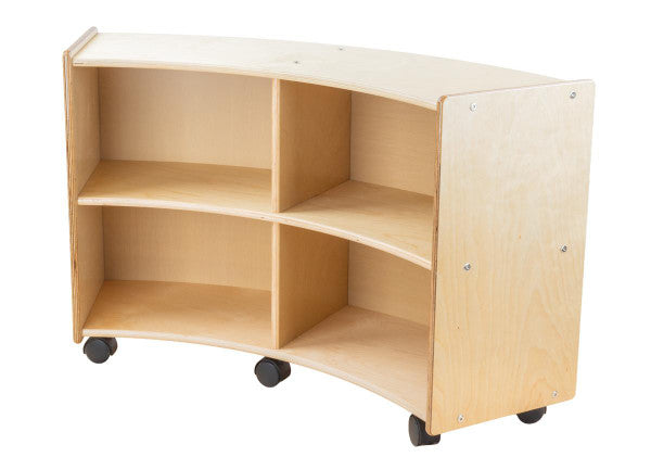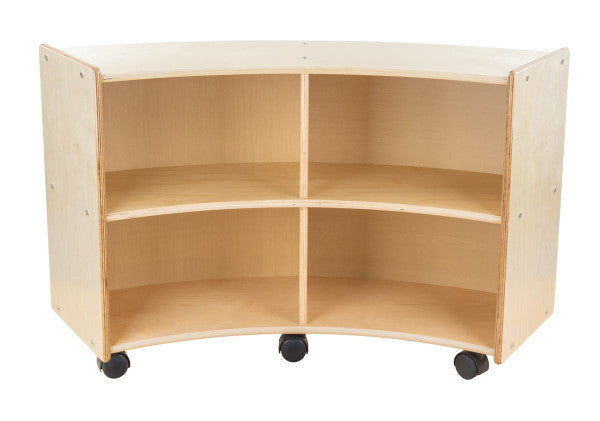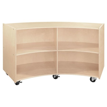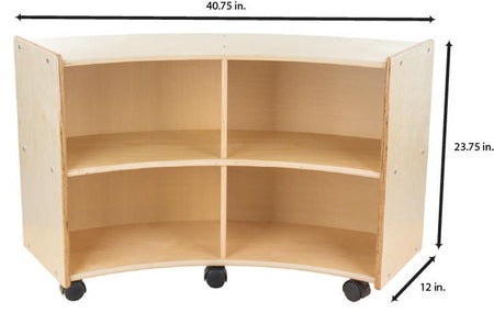 GREENGUARD Gold certified. This concave storage unit is a great addition to any classroom. Combine this unit with the C991162F-C5 convex storage unit to create a unique storage solution for any room. Constructed from Birch Plywood, and coated with our exclusive Tuff-Gloss™ UV finish. A recessed back for added strength, stability, and beauty. Fully rounded corners and edges for total safety. 23-3/4"H x 40-3/4"W x 12"D. Fully assembled on casters. Lifetime warranty. Made in the U.S.A.