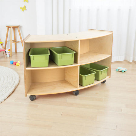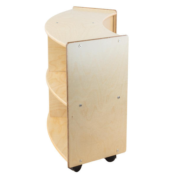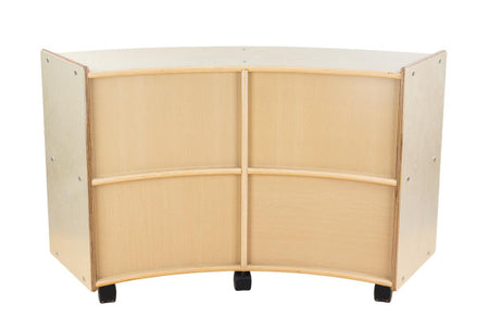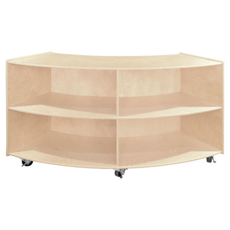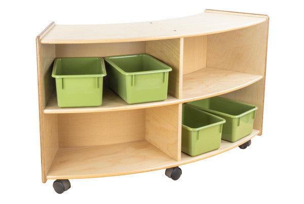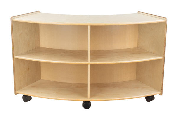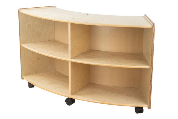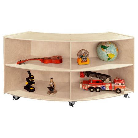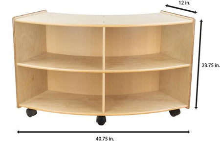 GREENGUARD Gold certified. This convex storage unit is a great addition to any classroom. Combine this unit with the C991161F-C5 convex storage unit to create a unique storage solution for any room. Constructed from Birch Plywood, and coated with our exclusive Tuff-Gloss™ UV finish. A recessed back for added strength, stability, and beauty. Fully rounded corners and edges for total safety. 23-3/4"H x 40-3/4"W x 12"D. Fully assembled on casters. Lifetime warranty. Made in the U.S.A.