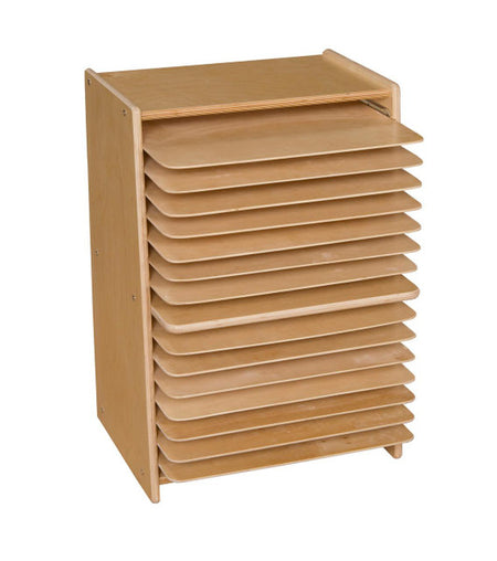 GREENGUARD Gold certified. (15) Shelves provide plenty of space to store student art while they are drying or are a work in progress. Birch Plywood, with mortise & secure fastener construction for exceptional strength and durability. Our exclusive UV Finish provides unsurpassed protection. Fully rounded corners and edges for maximum safety. 27-1/4"H x 20"W x 15"D. Fully assembled on casters. Lifetime warranty. Made in the U.S.A.