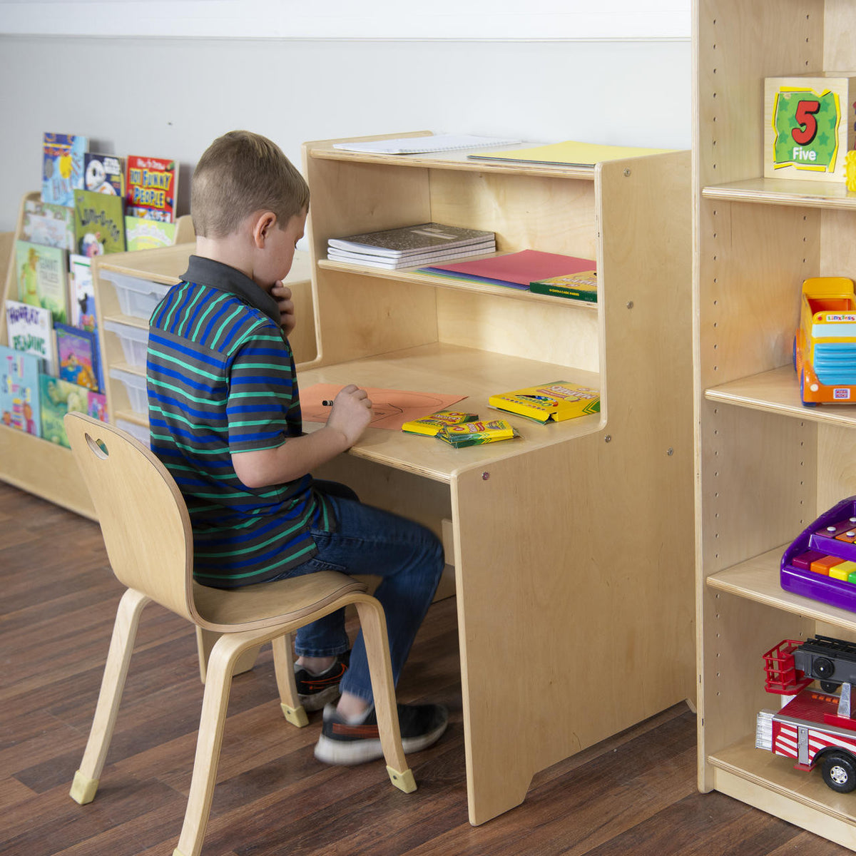 Make any area the perfect homework or art station with this GREENGUARD Gold certified Writing Desk. A 21-1/2”H desk provides ample room for children of any age. A 28-3/4”W x 22-7/8”D work surface offers an abundance of room. Birch Plywood, with mortise & secure fastener construction for exceptional strength and durability. Our exclusive UV Finish provides unsurpassed protection. Fully rounded corners and edges for maximum safety. 37-3/4"H x 30"W x 24"D. Ready to assemble. Lifetime warranty. Made in the U.S.A.