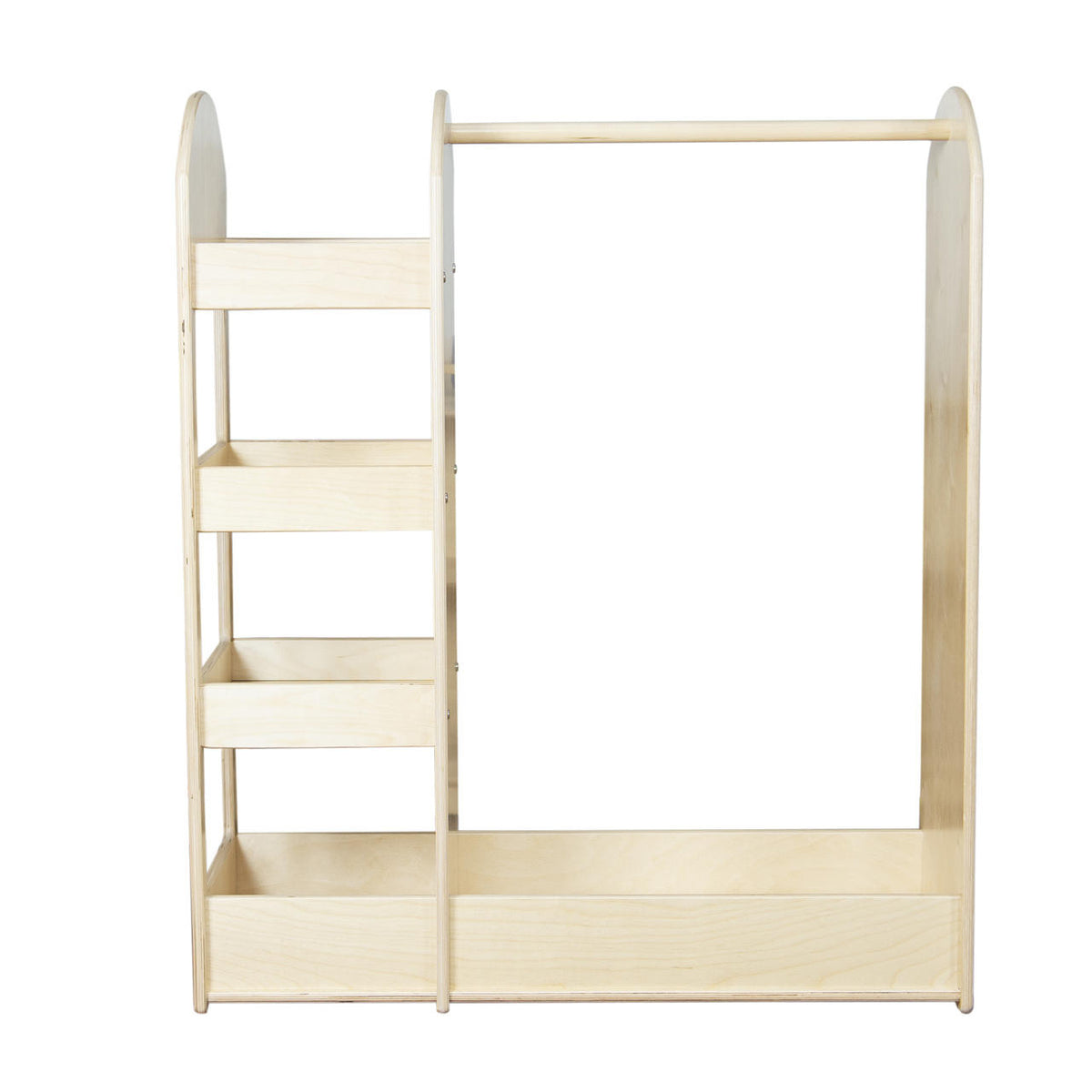 It’s time to play dress-up with the Contender See and Store Dress-Up Unit. Let their imaginations fly while they admire themselves with the attached mirror and when it’s time to go back to reality. A sturdy long wooden rod makes hanging all of their costumes a breeze. Additionally, there are four lipped storing shelves to the side for all of their necessary props. The open layout provides easy access for their belongings and the natural finish is perfect for any classroom or home décor. Constructed from Birch Plywood with eased edges and coated with our exclusive Tuff-Gloss™ UV finish making it resistant to stains and durable for any active classroom or home settings. This product is GREENGUARD Gold certified for non-toxic emissions and air quality. The storage dimensions are 42 7/16”H x 36”W x 15”D. This item comes flat packed and is ready to be assembled! The Contender See and Store Dress-Up Unit is proudly made in the U.S.A. with a lifetime warranty.
