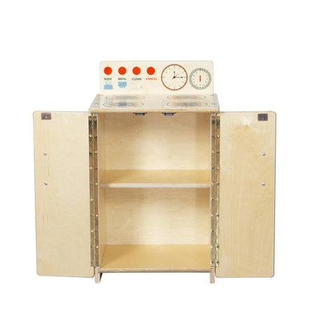 GREENGUARD Gold certified. This unique kitchen set includes the essential pieces that make up any great kitchen. Birch Plywood, with mortise & secure fastener construction for exceptional strength and durability. Our exclusive UV Finish provides unsurpassed protection. Fully rounded corners, edges and doors for maximum safety. Sink & Range: 22-1/2”H x 16”W x 12”D, Refrigerator & Hutch: 34-1/2”H x 16”W x 12”D. Fully assembled. Lifetime warranty. Made in the U.S.A.