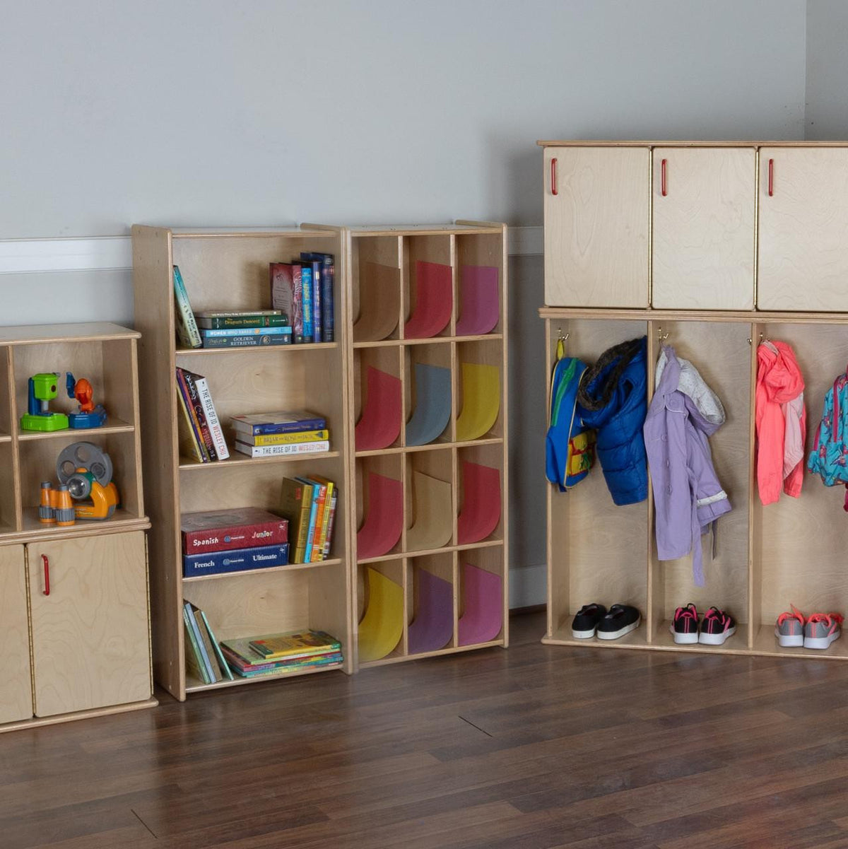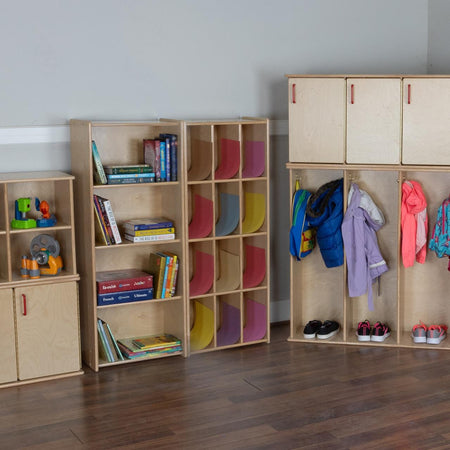 The Contender Stackable Shelving Unit with 12 Cubbies is a versatile and practical storage solution designed to meet a variety of organizational needs. In its horizontal orientation, it can be used with cubby trays, making it perfect for neatly storing small items, craft supplies, or classroom materials. The unit can also be rotated upright for use as a vertical organizer, ideal for books, toys, or art essentials. Constructed from Birch Plywood with eased edges and coated with our exclusive Tuff-Gloss™ UV finish making it resistant to stains and durable for any active classroom or home settings. This product is GREENGUARD Gold certified for non-toxic emissions and air quality. 19-1/4"H x 49"W x 12"D. The Contender Stackable Shelving Unit with 12 Cubbies is proudly made in the U.S.A. with a lifetime warranty and comes fully assembled to your doorstep!