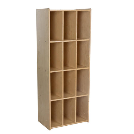 The Contender Stackable Shelving Unit with 12 Cubbies is a versatile and practical storage solution designed to meet a variety of organizational needs. In its horizontal orientation, it can be used with cubby trays, making it perfect for neatly storing small items, craft supplies, or classroom materials. The unit can also be rotated upright for use as a vertical organizer, ideal for books, toys, or art essentials. Constructed from Birch Plywood with eased edges and coated with our exclusive Tuff-Gloss™ UV finish making it resistant to stains and durable for any active classroom or home settings. This product is GREENGUARD Gold certified for non-toxic emissions and air quality. 19-1/4"H x 49"W x 12"D. The Contender Stackable Shelving Unit with 12 Cubbies is proudly made in the U.S.A. with a lifetime warranty and comes flat packed and is ready to be assembled!