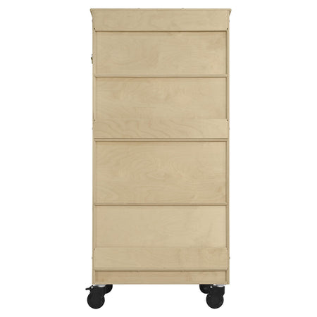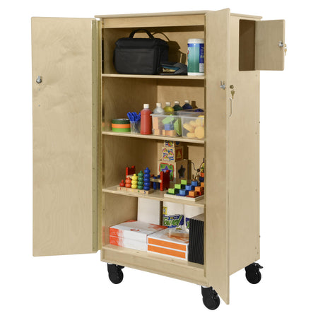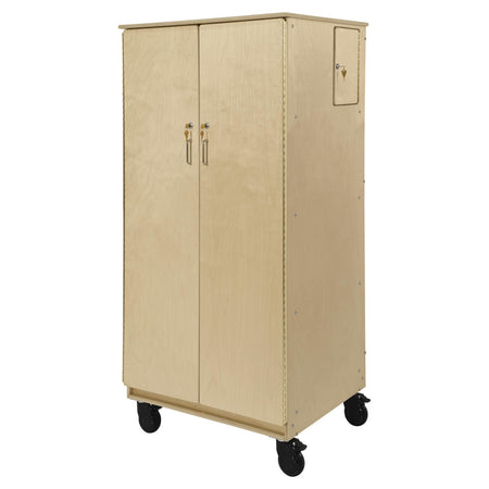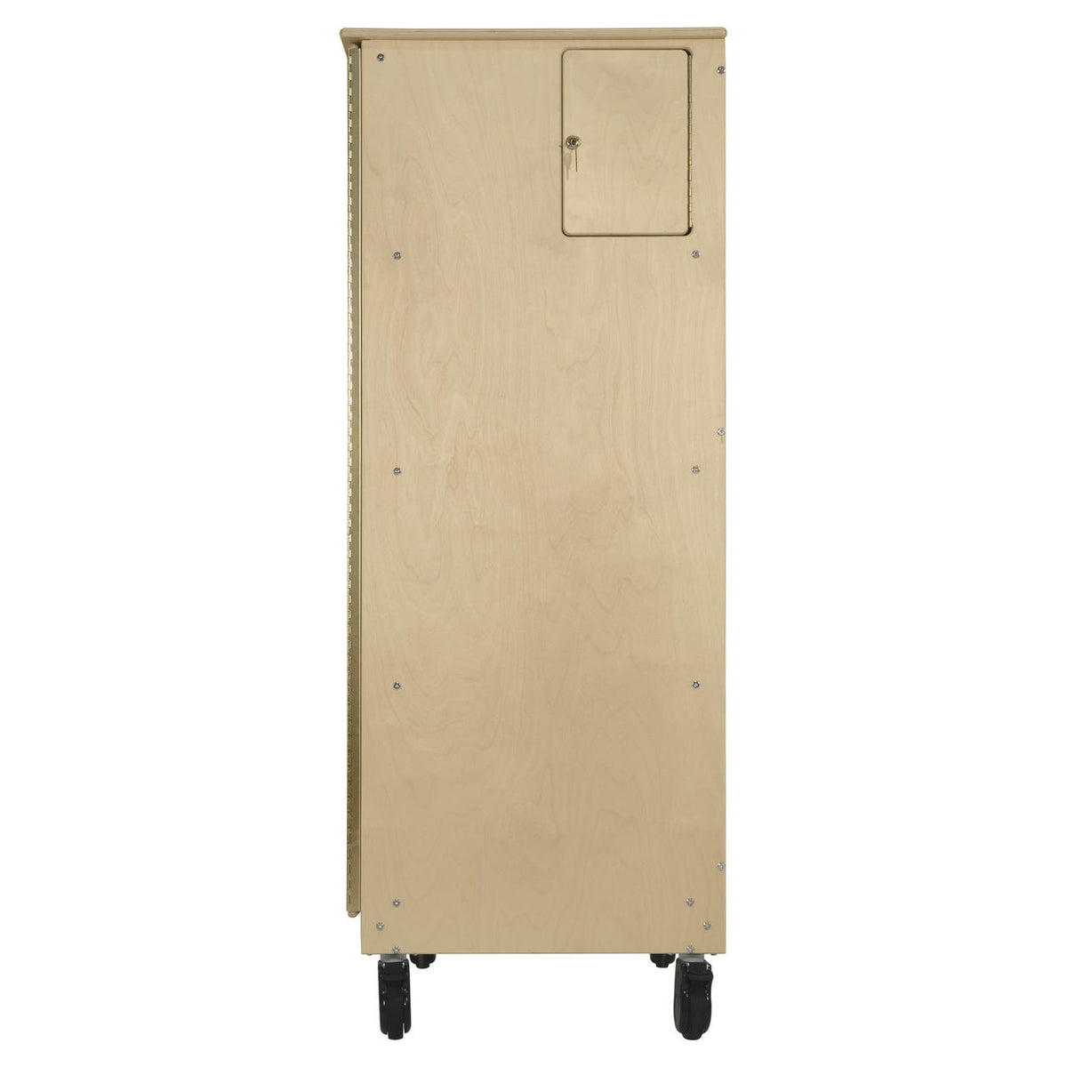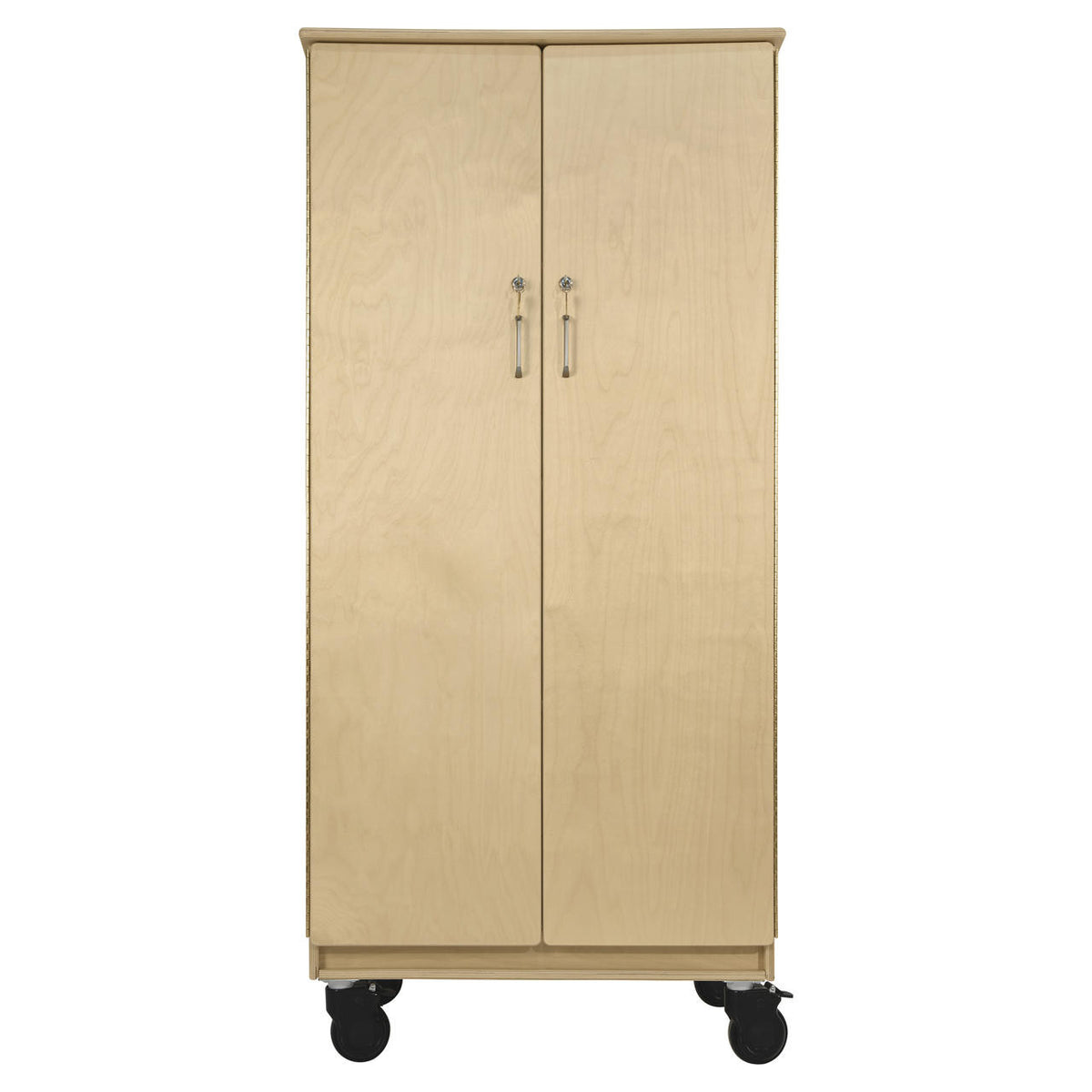 Secure and lock your teacher’s belongings with the Contender Teacher’s Four Cubby Locking Cabinet. This large durable and lockable cabinet has four large cubbies for the entire classroom’s equipment. Additionally, to the side of the unit is an additional locking compartment perfect for locking up your valuables during class. The four attached heavy-duty 5” swiveling locking casters makes this hefty wardrobe glide and anchors conveniently around your room. Constructed from Birch Plywood with eased edges and coated with our exclusive Tuff-Gloss™ UV finish making it resistant to stains and durable for any classroom or home settings. The mortise & steel fasteners provide exceptional joint strength and durability. This product is GREENGUARD Gold certified for non-toxic emissions and air quality. The unit’s dimensions: 65”H x 31”W x 25 3/8”D. This item comes flat packed and is ready to be assembled! The Contender Teacher’s Four Cubby Locking Cabinet is proudly made in the U.S.A. with a lifetime warranty.