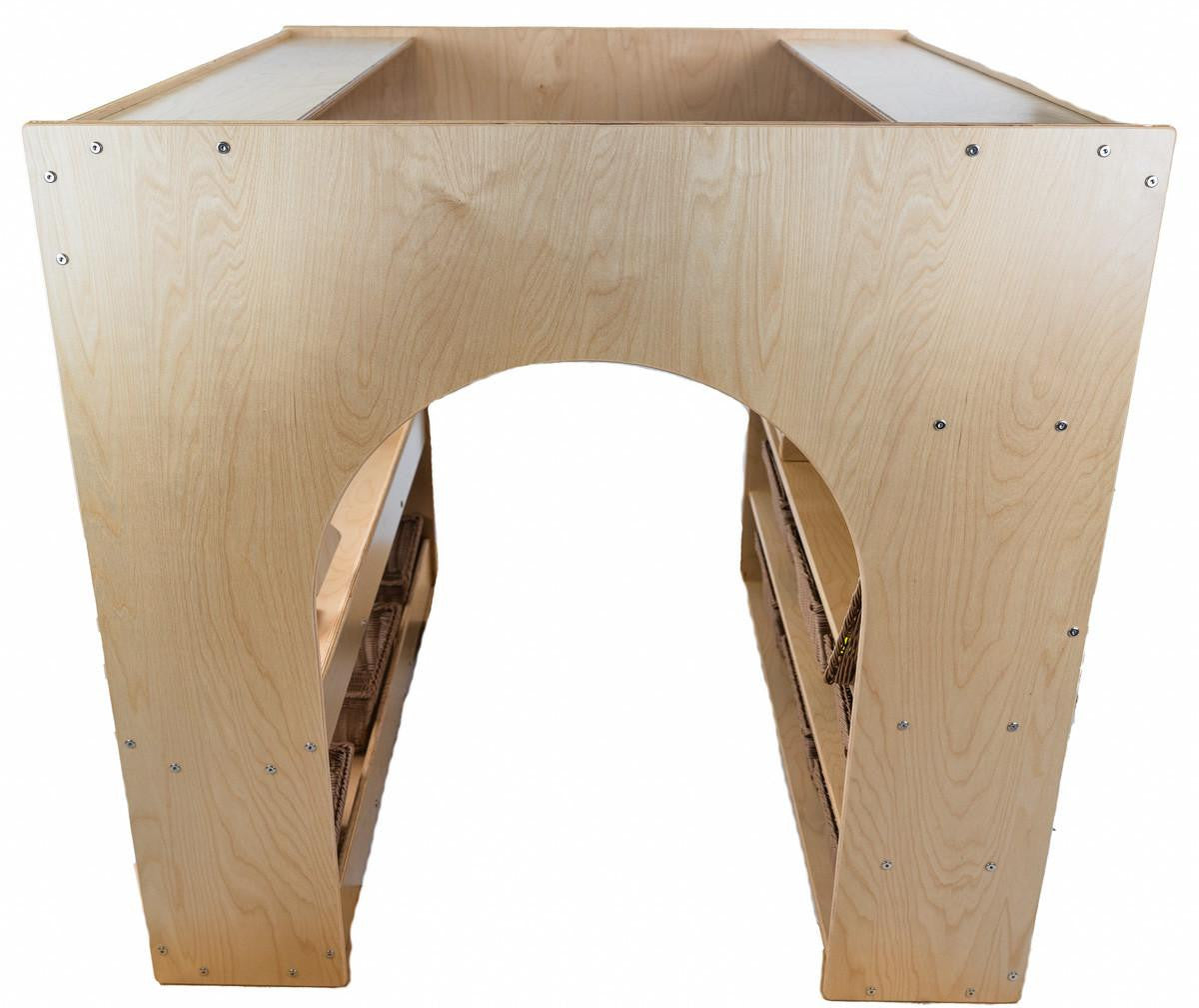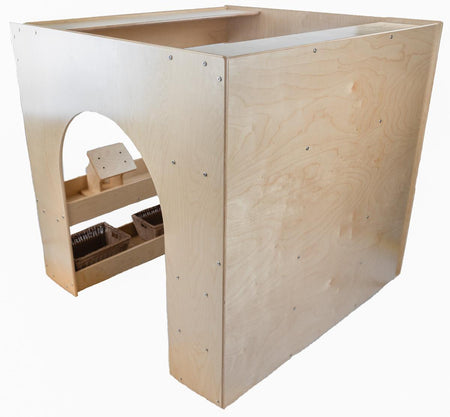 The natural finish and classic design is perfect for any room décor. Constructed from Birch Plywood with eased edges and coated with our exclusive Tuff-Gloss™ UV finish making it resistant to stains and durable for any classroom or home settings. This product is GREENGUARD Gold certified for non-toxic emissions and air quality. The total dimensions of this unit are 46 ¼” H x 48”W x 47 ½” D, the arched openings on either side are 36”H and 26”W, and the countertop height is 18”. The unit comes flat packed and is ready to be assembled! The Contender Town Collection- Market is proudly made in the U.S.A. with a lifetime manufacturer’s warranty. Please note that this product does not include play food items.