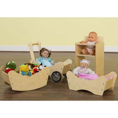 GREENGUARD Gold certified. Quality designed doll carriage that is perfect for classroom doll play. Birch Plywood, with our exclusive Tuff-Gloss™ UV finish. Fully rounded corners and edges for maximum safety. 24"H x 21-1/2"W x 11-9/16"D. Fully assembled. Lifetime warranty. Made in the U.S.A.