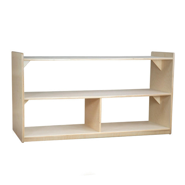 GREENGUARD Gold CERTIFIED. This open backed unit is perfect for storing various mathematics or langauge supplies. The rimmed top is a perfect place for children to practice their bead counting or other activities. Constructed from Birch Plywood, and coated with our exclusive Tuff-Gloss™ UV finish. Fully rounded corners and edges for maximum safety. 23 1/2"H x 48"W x 15"D. Fully assembled on locking casters. Lifetime warranty. Made in the U.S.A.
