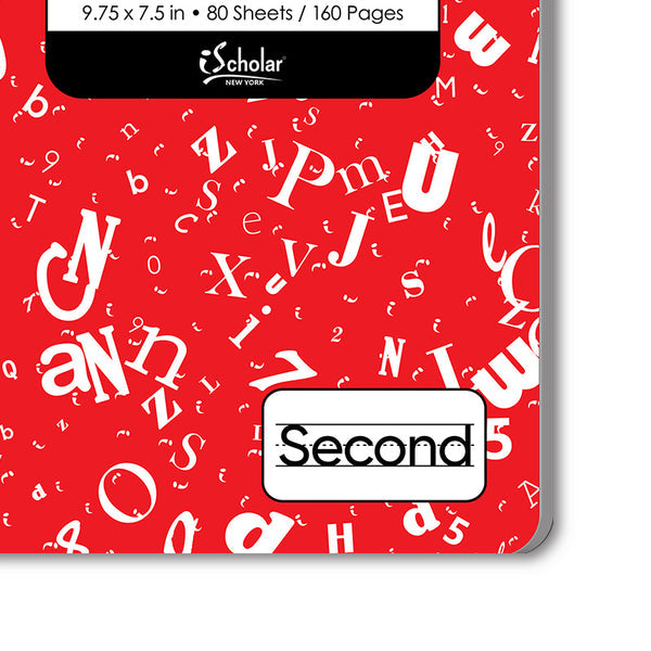 Penmanship Manuscript Cursive Notebook Red 2nd Grade 9.75 x 7.5in 80 Sheets, (10029)