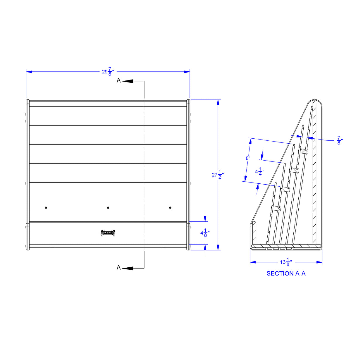 This flushback book stand is perfect for placing against a wall or using the write-n-wipe back for multipurpose use. Features five display shelves with approximately 1" shelf depth. The bookstand stores flush against walls and the top is fully rounded. Constructed of double-sided freckled gray laminate with coastal blue TRUEdge. Product Dimension : 30" width X27.5" Height X 13.5" Depth Made in USA, Life Time Warranty