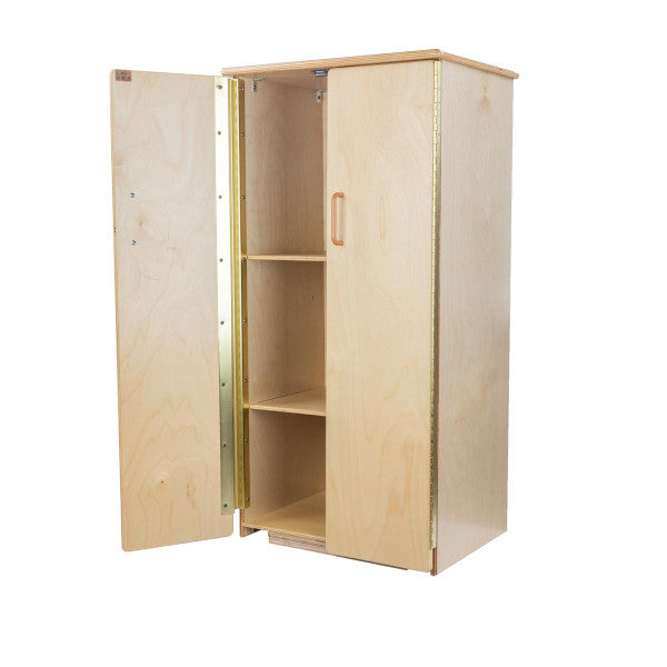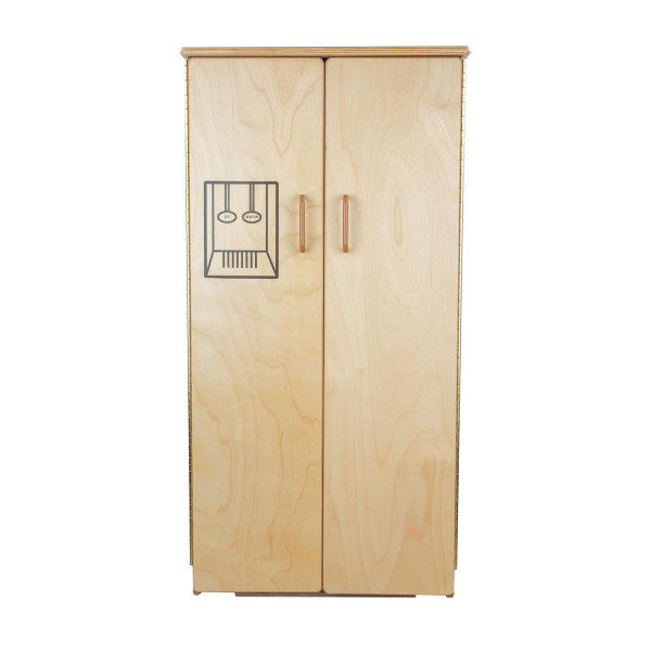 GREENGUARD Gold certified. This refrigerator combines abundant storage, smooth plastic door handles, and a fun water and ice graphic. Constructed from Birch Plywood, and coated with our exclusive Tuff-Gloss™ UV finish. A recessed back for added strength, stability, and beauty. Full length Pinch-Me-Not™™ hinges with full length Tip-Me-Not™ doors. Fully rounded corners, edges, and doors for maximum safety. 40"H x 20-1/2"W x 15"D. Fully assembled. Lifetime warranty. Made in the U.S.A.