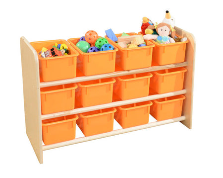 GREENGUARD Gold certified. Visible storage in a very attractive unit. Our unique design makes it fun to use for teachers & children. (12) orange pastel trays included. Constructed from Birch Plywood, and coated with our exclusive Tuff-Gloss™ UV finish. Fully rounded corners and edges for maximum safety. 21"H x 33"W x 14"D. Fully assembled. Lifetime warranty. Made in the U.S.A.