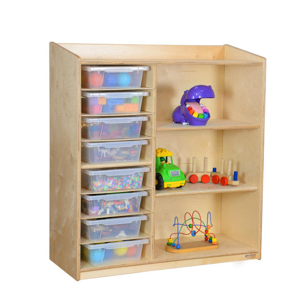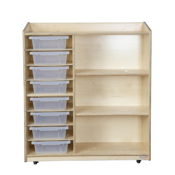 GREENGUARD Gold certified. Great for storing all types of manipulatives. This versatile unit can be placed almost anywhere in the learning environment. Comes with (8) translucent letter trays. Made from Birch Plywood, with our exclusive Tuff-Gloss™ UV finish. A recessed back for added strength, stability, and beauty. Fully rounded corners and edges for maximum safety. 41"H x 36"W x 16"D. Fully assembled on locking casters. Lifetime warranty. Made in the U.S.A.