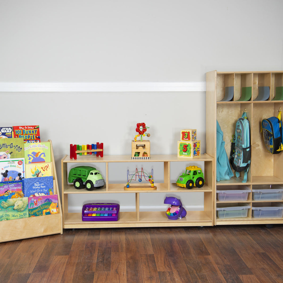 GREENGUARD Gold certified. Our most popular storage unit. Constructed from Birch Plywood, and coated with our exclusive Tuff-Gloss™ UV finish. A recessed acrylic back for added strength, stability, and beauty. Fully rounded corners and edges for total safety. 23 1/2"H x 48"W x 15"D. Fully assembled on locking casters. Lifetime warranty. Made in the U.S.A.