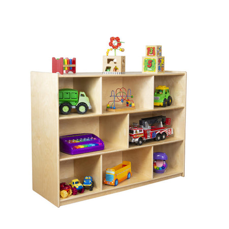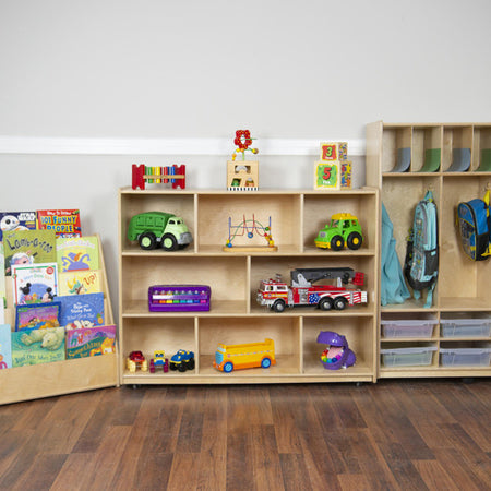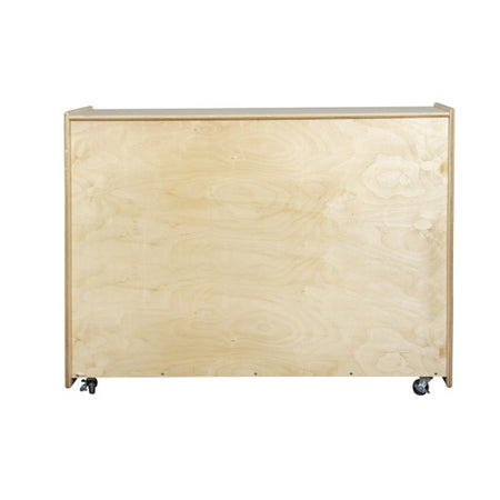 GREENGUARD Gold certified. Our most popular storage unit. Constructed from Birch Plywood, and coated with our exclusive Tuff-Gloss™ UV finish. A recessed back for added strength, stability, and beauty. Fully rounded corners and edges for total safety. 38"H x 48"W x 15"D. Fully assembled on locking casters. Lifetime warranty. Made in the U.S.A.