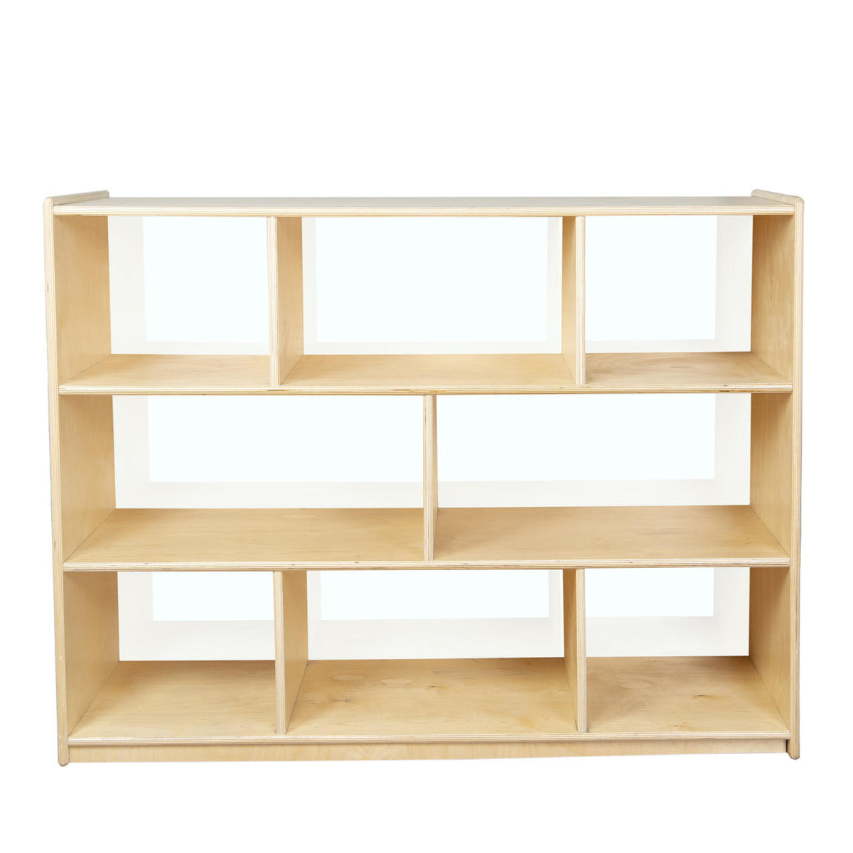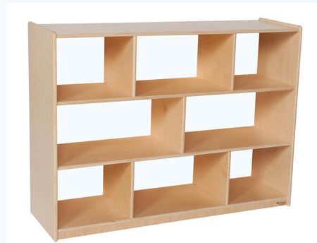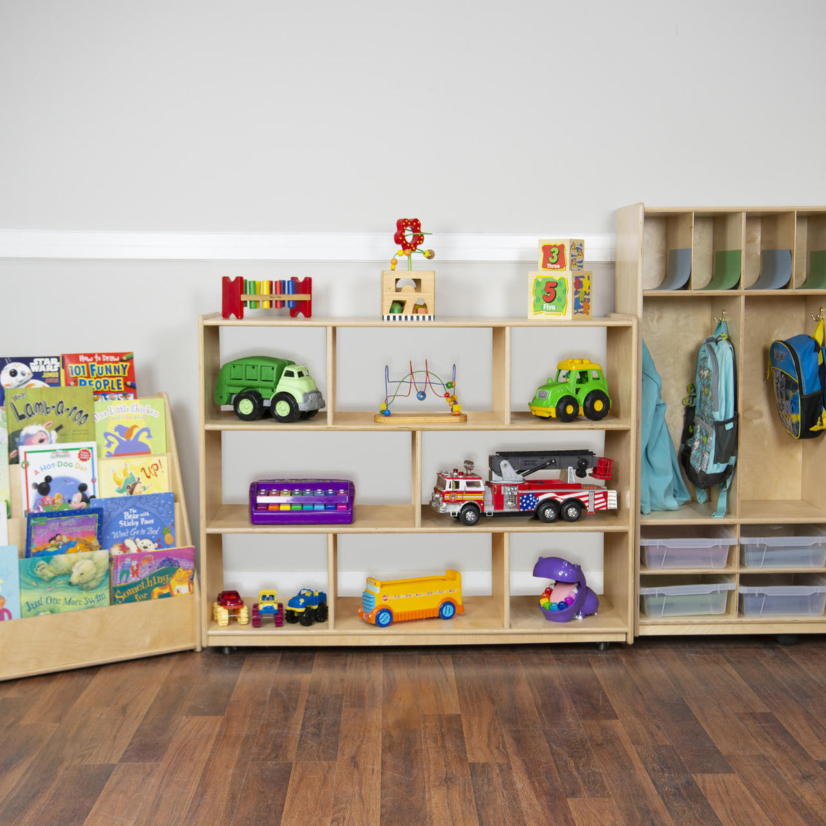 GREENGUARD Gold certified. Our most popular storage unit. Constructed from Birch Plywood, and coated with our exclusive Tuff-Gloss™ UV finish. A recessed acrylic back for added strength, stability, and beauty. Fully rounded corners and edges for total safety. 38"H x 48"W x 15"D. Fully assembled on locking casters. Lifetime warranty. Made in the U.S.A.
