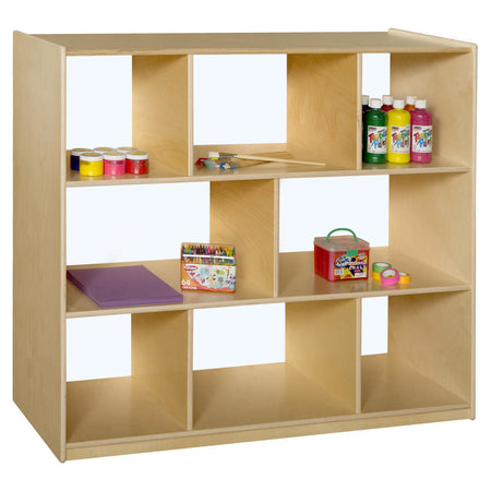 GREENGUARD Gold certified. Our most popular storage unit. Constructed from Birch Plywood, and coated with our exclusive Tuff-Gloss™ UV finish. A recessed acrylic back for added strength, stability, and beauty. Fully rounded corners and edges for total safety. 43-5/8"H x 48"W x 15"D. Fully assembled on locking casters. Lifetime warranty. Made in the U.S.A.