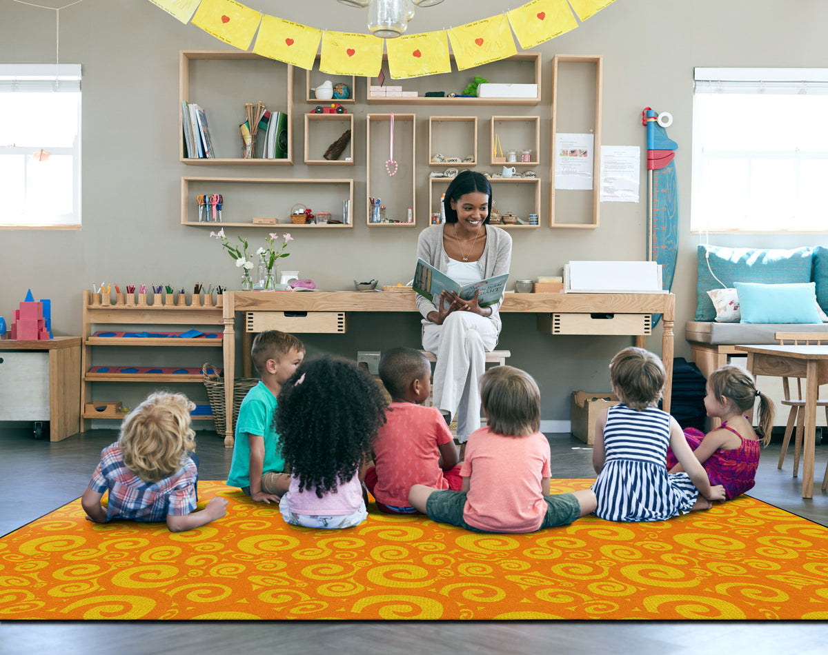 Tone-On-Tone Solids® add subtle depth and visible texture to accent carpets in any classroom, common area or administrative space. Dramatically transform a dated, solid color accent carpet to a warm and textured look with strong visual appeal. Available in two (2) new patterns, Hashtag and Swirl, and six (6) colors; Blue, Red, Green, Orange, Chocolate and Almond.