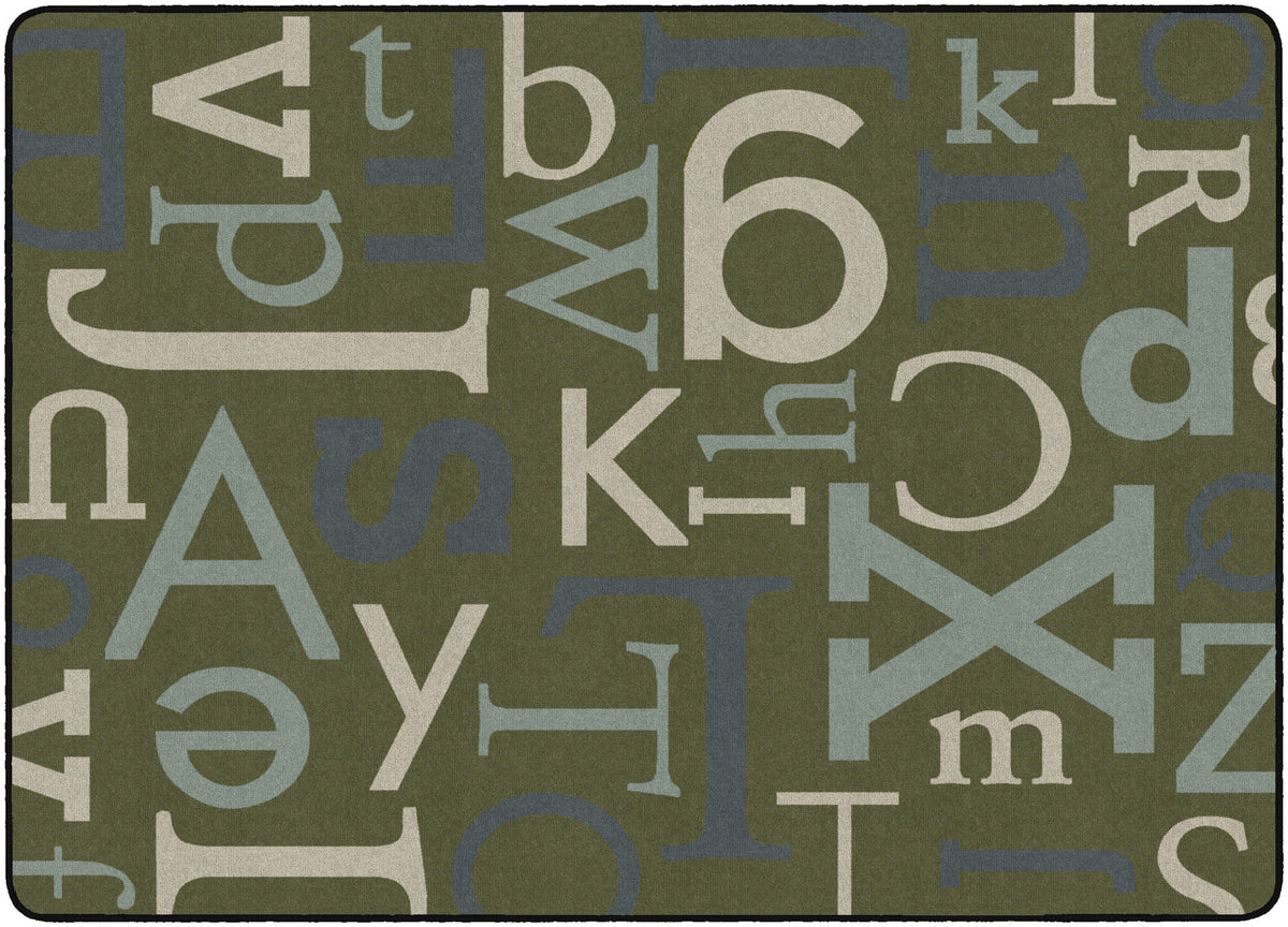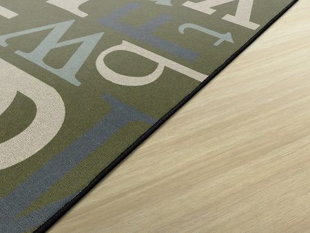 A multitude of letters in different fonts and sizes is the theme to this modern rug. A fun, edgy look for any office, lobby or computer lab.