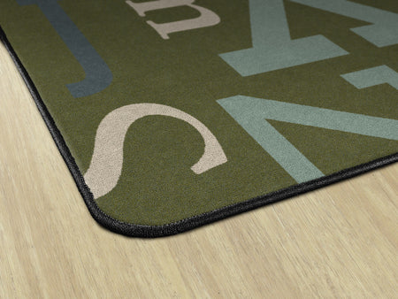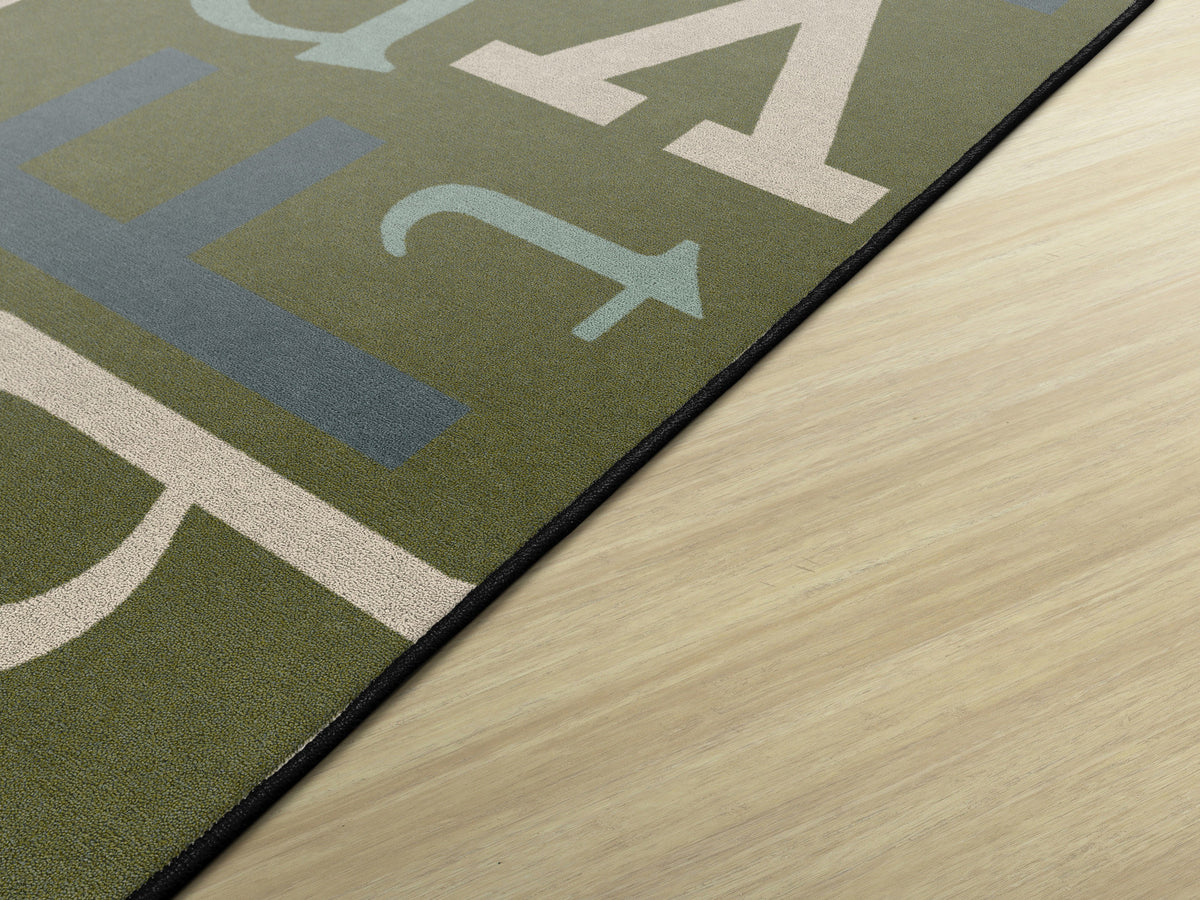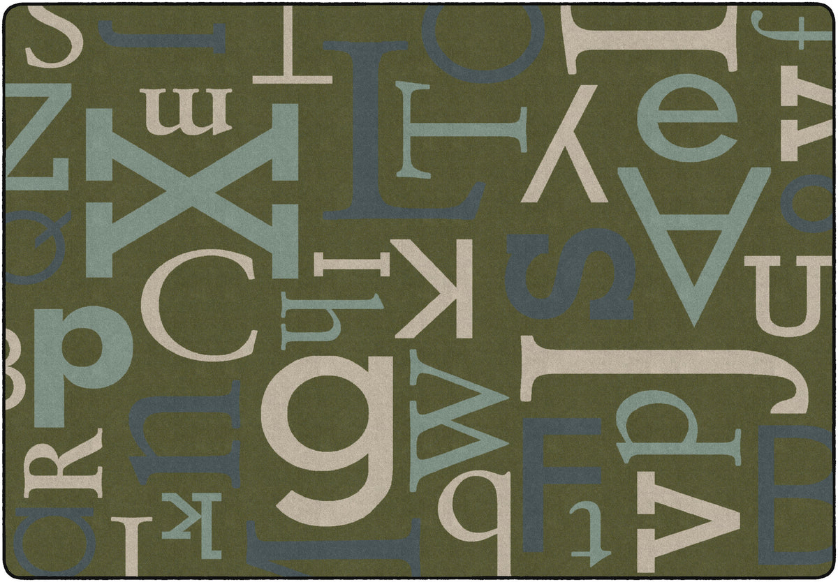 A multitude of letters in different fonts and sizes is the theme to this modern rug. A fun, edgy look for any office, lobby or computer lab.