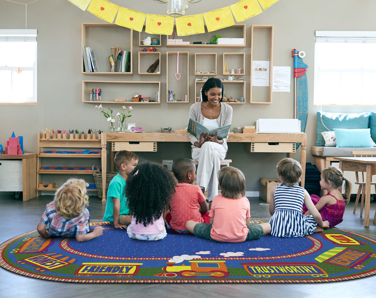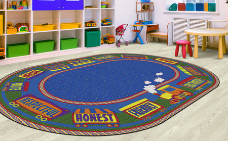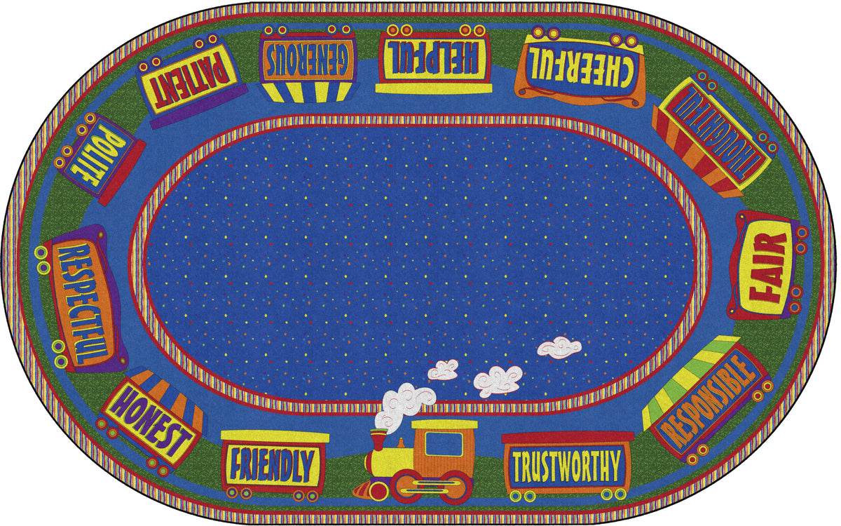This cute rug features a train around the board to remind students the qualities that make a good friend! Help your students learn good character traits with this fun rug!