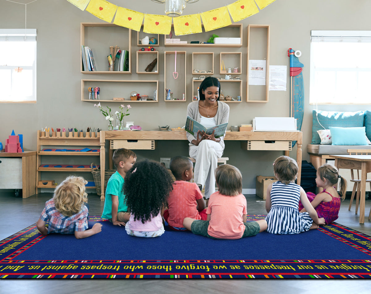Perfect for any christian school or church classroom, this rug teaches The Lord's Prayer while serving as a seating area for young children.