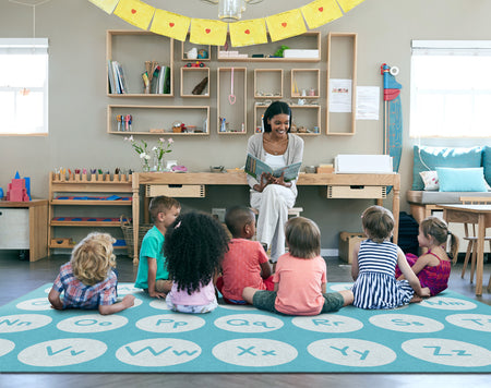 TONE ON TONE ALPHABET LIGHT BLUE RECTANGLE CARPETS 7'6" X 12'
