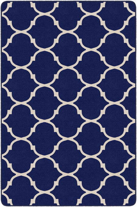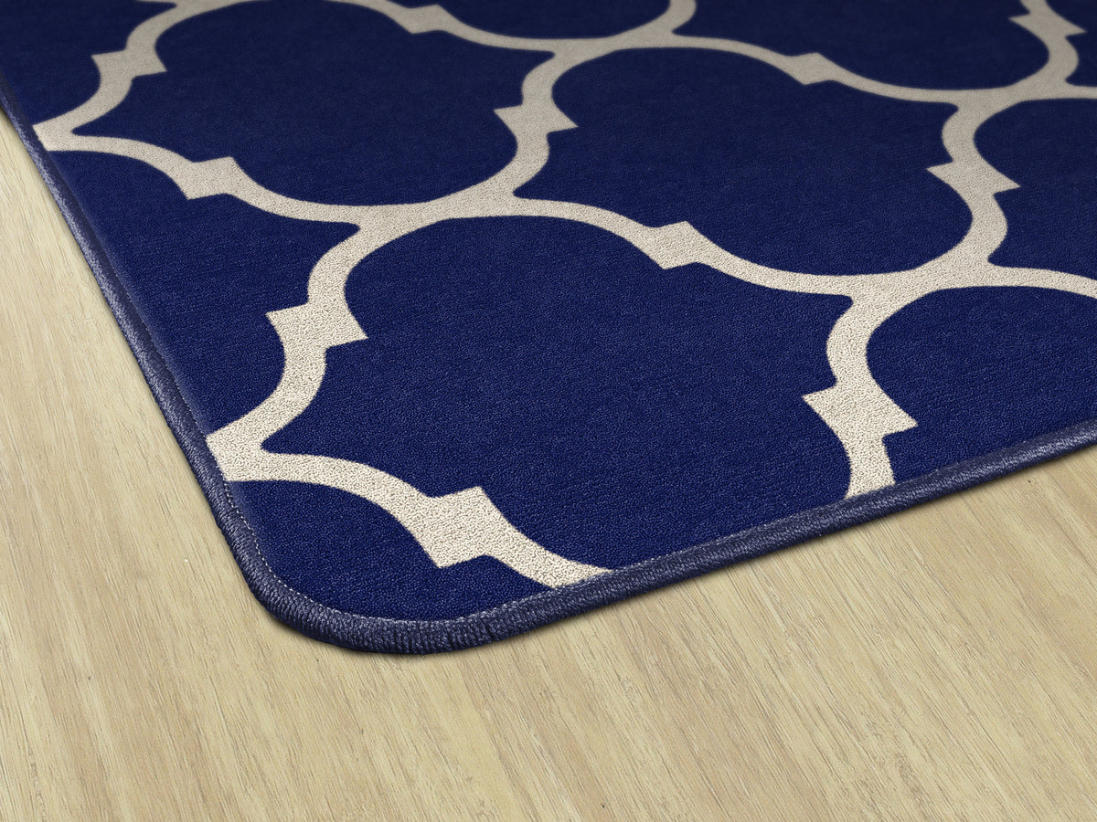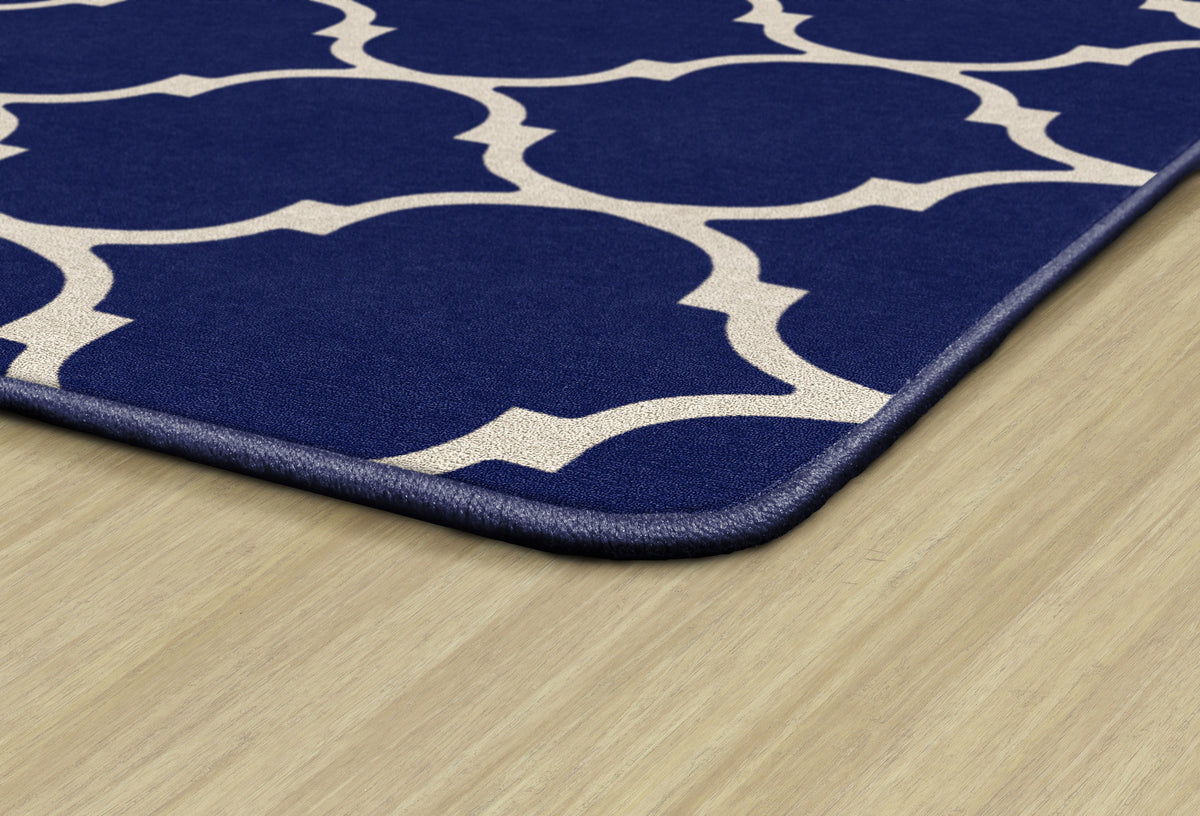 This navy Moroccan trellis rug will easily add a contemporary flair to any office area. Durable with stain resistance, this carpet will maintain its appearance even in high traffic areas.