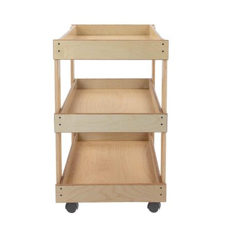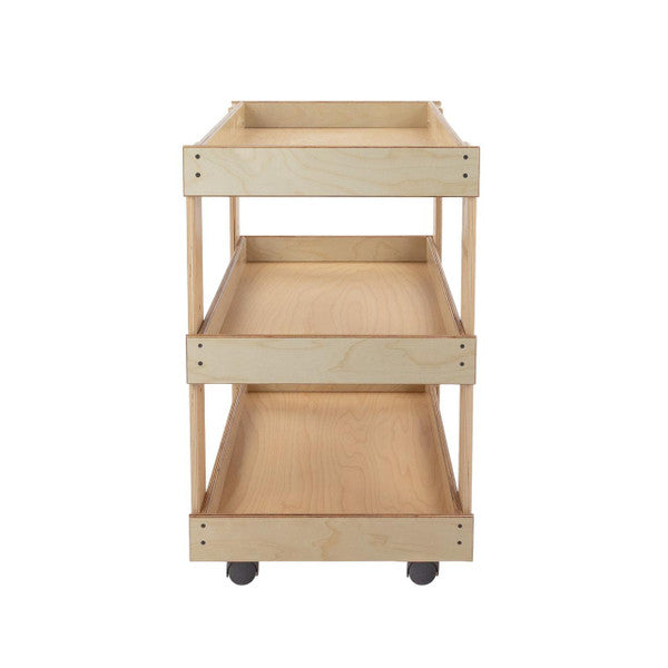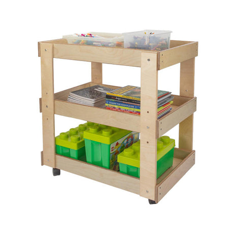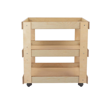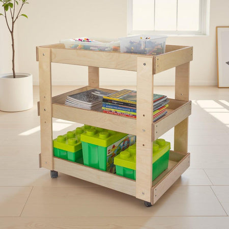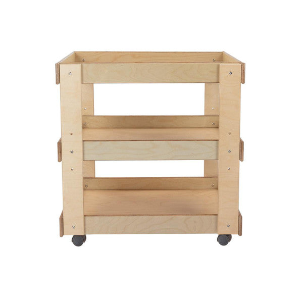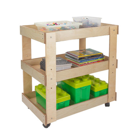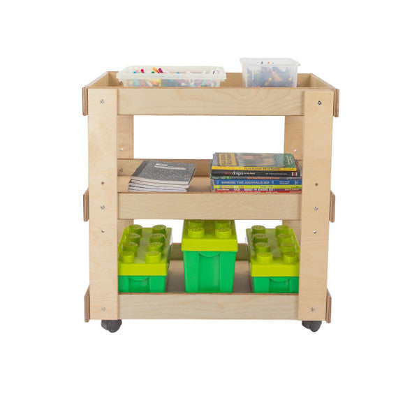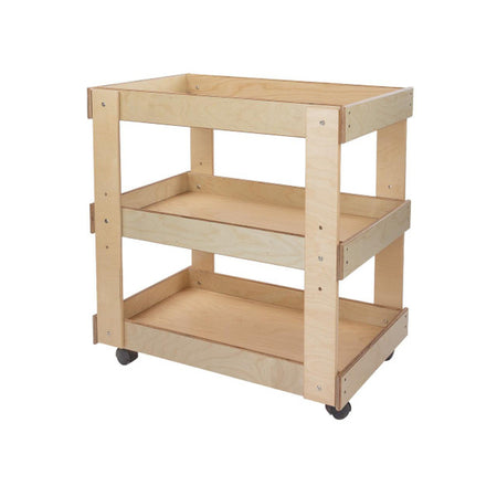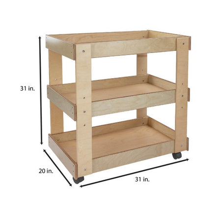 GREENGUARD Gold certified. Sturdy top with deep safety lip prevents heavy supplies from sliding. Adjustable center shelf stores oversize containers. On heavy-duty swivel casters. Constructed from Birch Plywood, and coated with our exclusive Tuff-Gloss™ UV finish. Fully rounded corners and edges for maximum safety. 31"H x 31"W x 20"D. Some assembly required. Lifetime warranty. Made in the U.S.A.