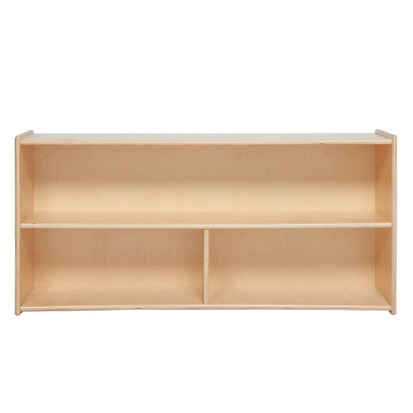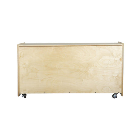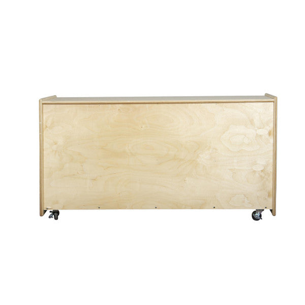 GREENGUARD Gold certified. Full length open shelf provides a variety of storage options. Constructed from Birch Plywood, and coated with our exclusive Tuff-Gloss™ UV finish. A recessed back for added strength, stability, and beauty. Fully rounded corners and edges for maximum safety. 23 1/2"H x 48"W x 15"D. Fully assembled on locking casters. Lifetime warranty. Made in the U.S.A.
