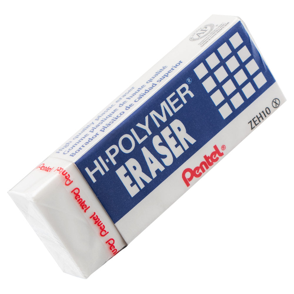 Use this latex-free eraser to remove mistakes and accidental marks without leaving behind smudges or eraser dust. This Pentel Hi-Polymer eraser is composed of polyvinyl chloride that stays soft and easy to use, helping reduce damage to pages and making editing a mess-free process.