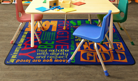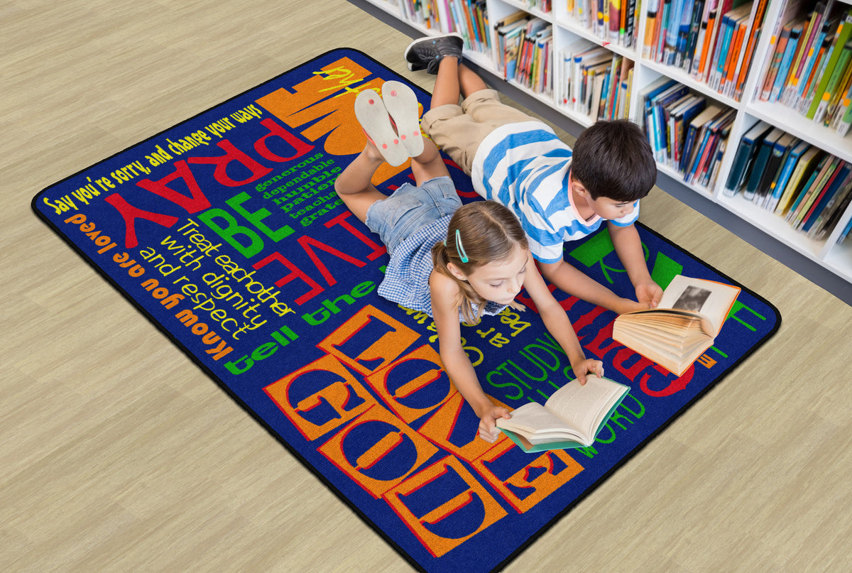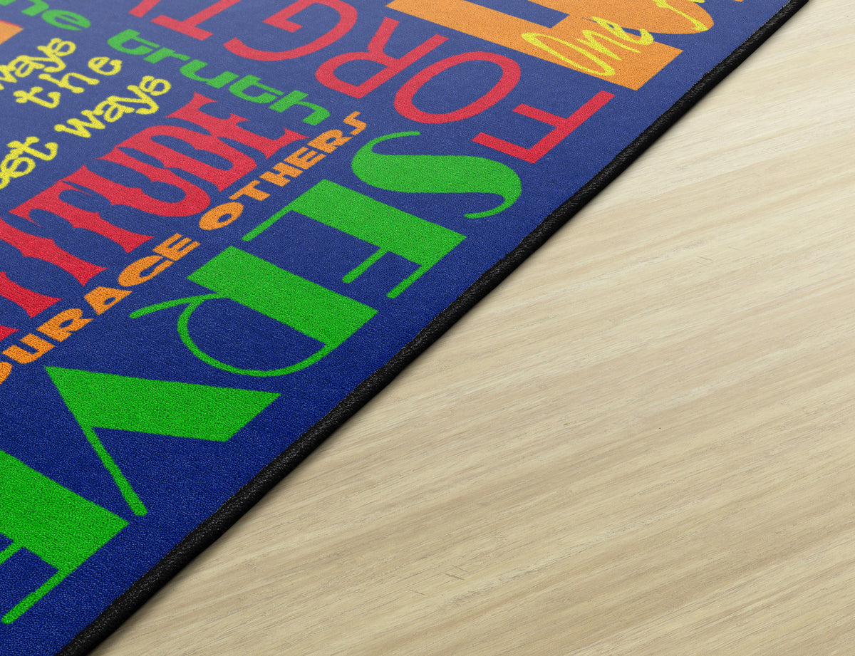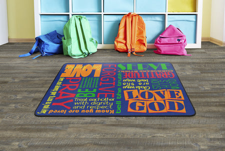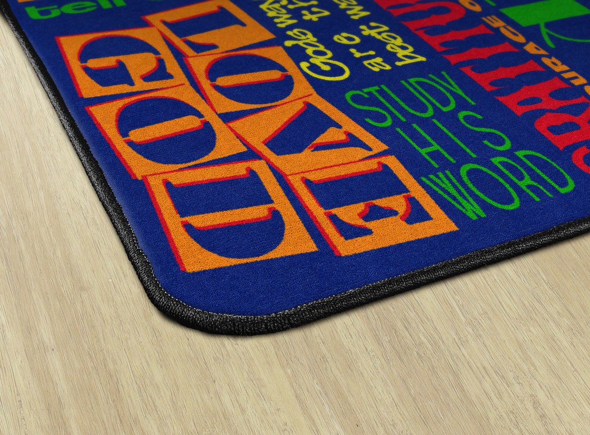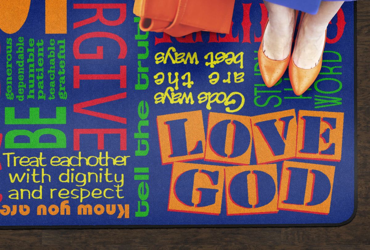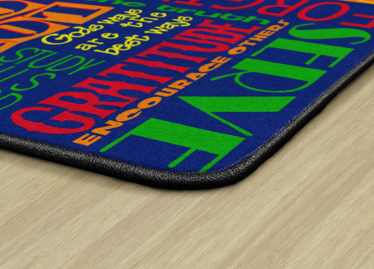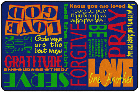 This rug features encouraging words of wisdom to help us "Walk His Way" through the journey of life. This rug is perfect for any home, christian school classroom, or church classrooom.
