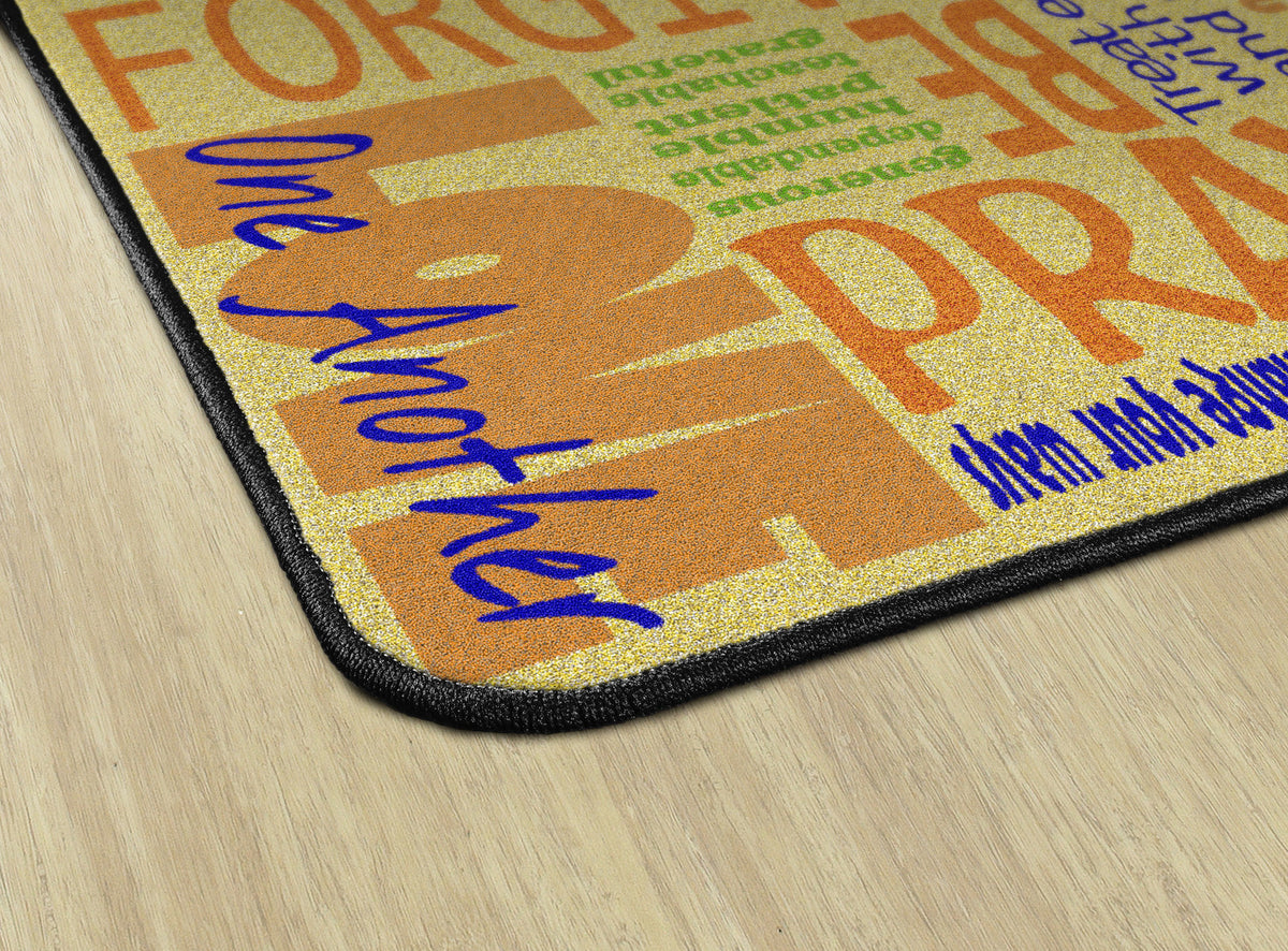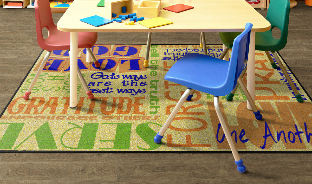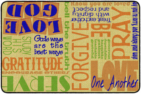 This rug features encouraging words of wisdom to help us "Walk His Way" through the journey of life. This rug is perfect for any home, christian school classroom, or church classrooom.