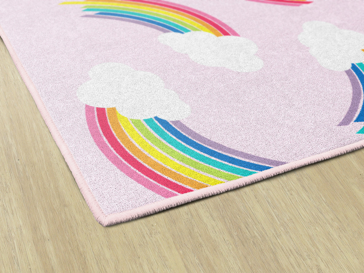 WHIMSICAL RAINBOW PINK RECTANGLE CARPETS 5' X 7'6"