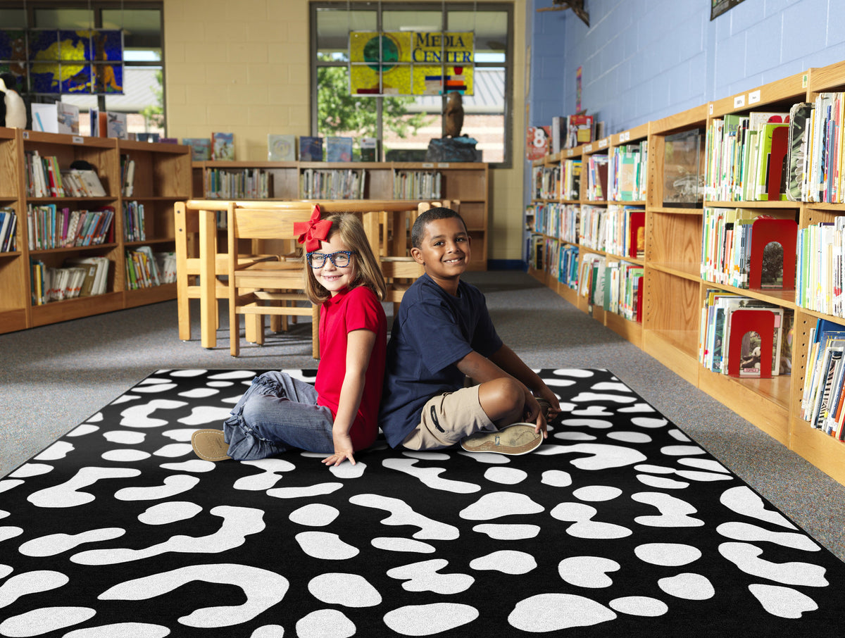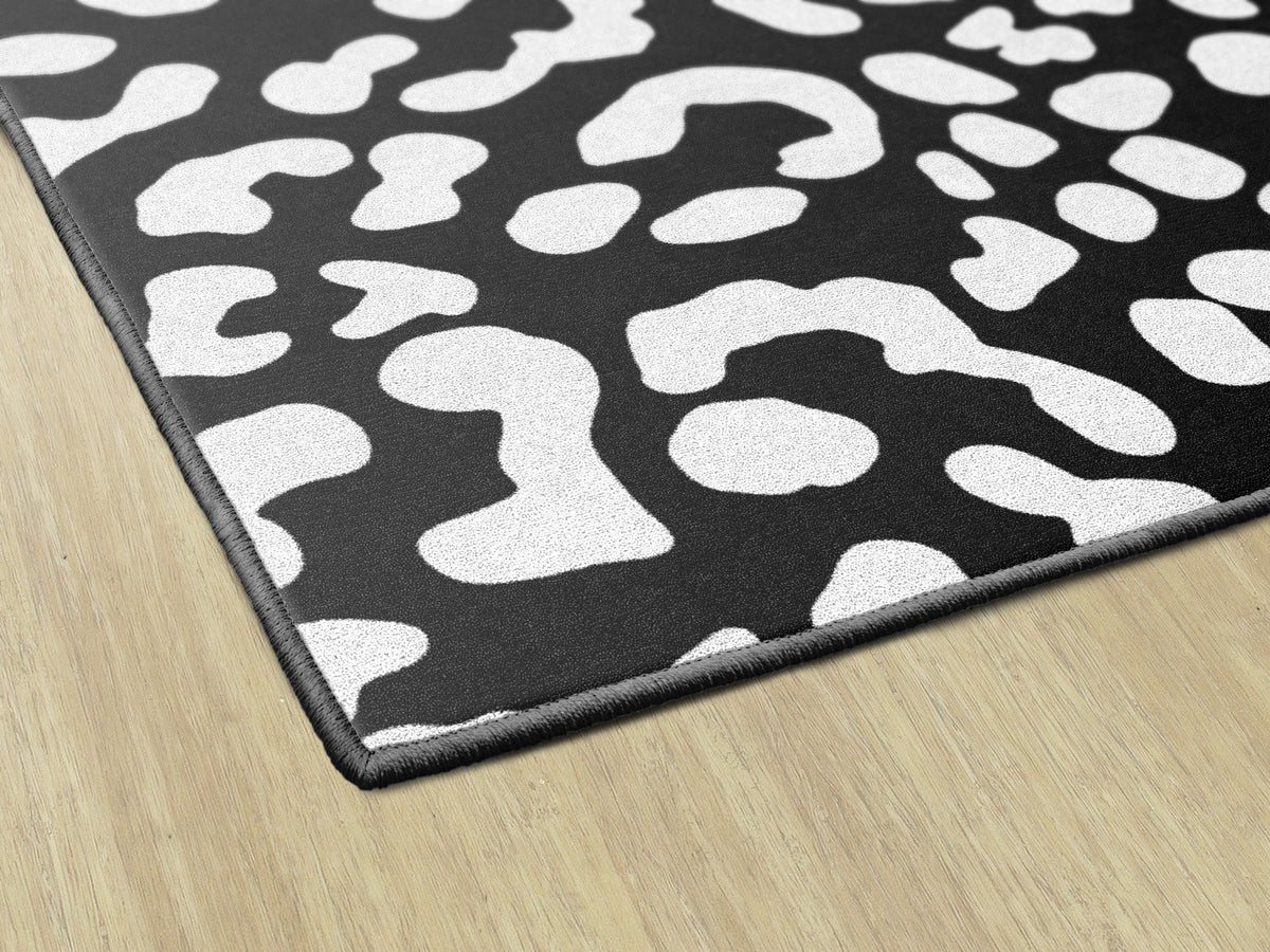 WHITE ON BLACK LEOPARD RECTANGLE CARPETS 5' X 7'6"