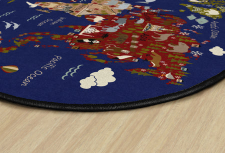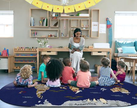 Students will love traveling around the world and identifying familiar images on each continent with this fun educational rug. Perfect for any daycare, playroom, preschool, or classroom, children will learn about habitats and landmarks around the world. With stain resistance, this oval carpet will maintain its appearance even in high traffic areas, and double-stitched edges won’t unravel.