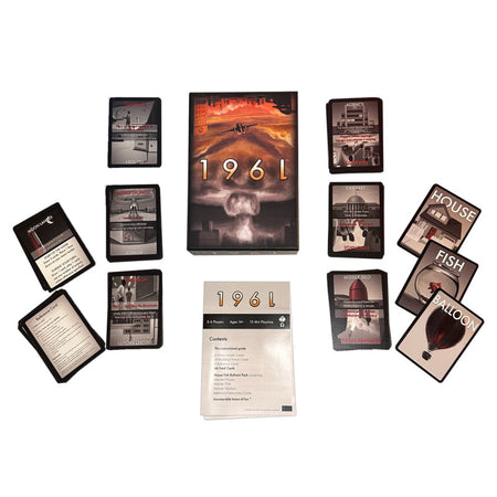 In this Cold War themed Draw 1, Play 1 card game, players will bunker down to avoid mutually assured destruction. No matter how steadfast your defenses, you could be just one missile away from total disaster. Learn about the events of the 1960s while you ruin friendships with a single card. 2-6 players, ages 12 and up. Great for family game night. Recommended age 12+ years