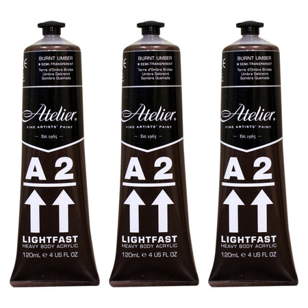 A2 Heavy Body Lightfast Artist Acrylic, 4 oz., Burnt Umber, Pack of 3