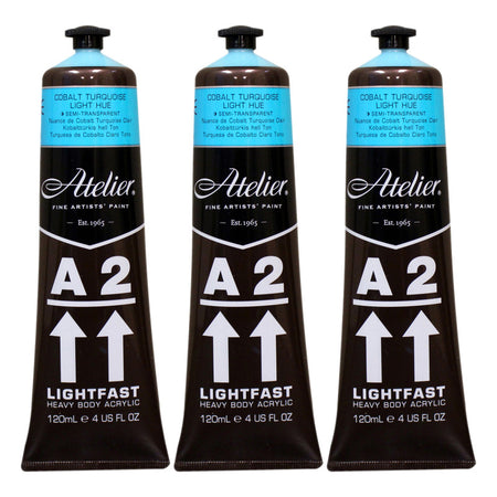 A2 Heavy Body Lightfast Artist Acrylic, 4 oz., Cobalt Turquoise Light Hue, Pack of 3