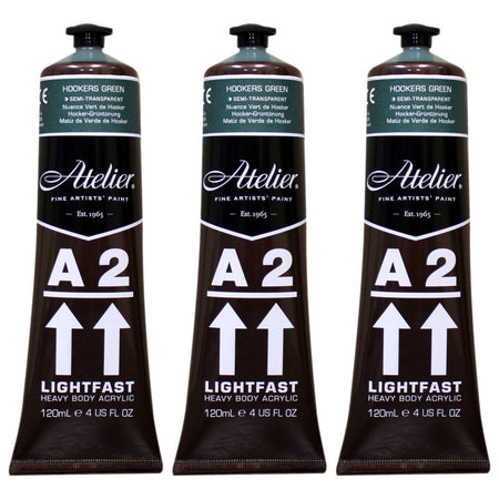 A2 Heavy Body Lightfast Artist Acrylic, 4 oz., Hookers Green Hue (Forest Green Hue), Pack of 3