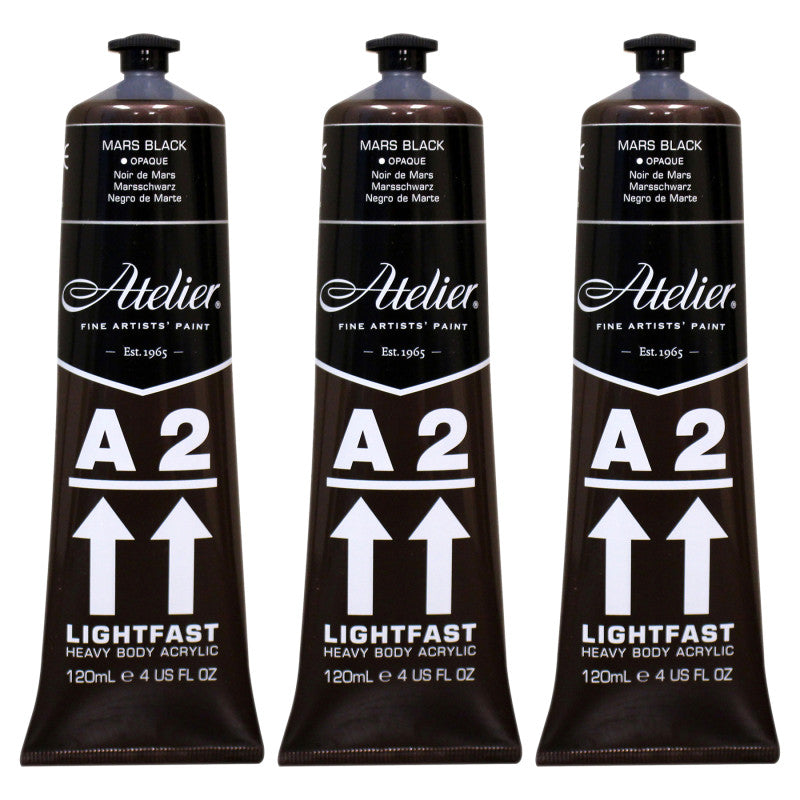 A2 Heavy Body Lightfast Artist Acrylic, 4 oz., Mars Black, Pack of 3