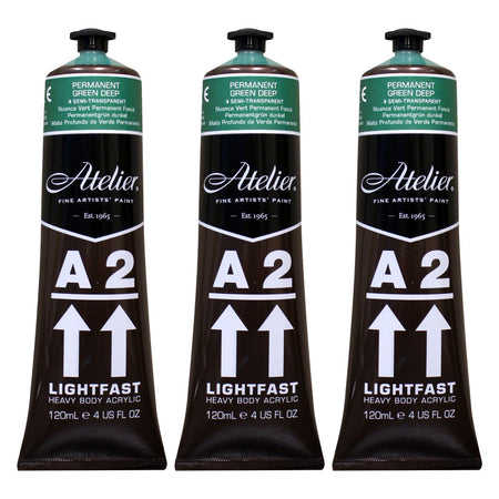 A2 Heavy Body Lightfast Artist Acrylic, 4 oz., Permanent Green Deep Hue, Pack of 3