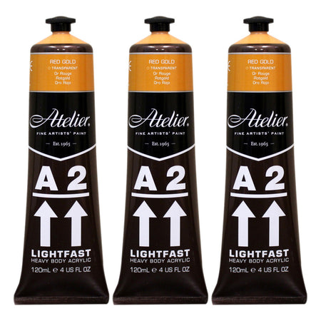 A2 Heavy Body Lightfast Artist Acrylic, 4 oz., Red Gold, Pack of 3