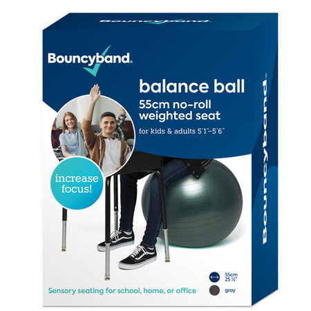 Non-roll away weighted balance ball offers a flexible chair for school and home enabling increased focus and improved performance. STAYS IN PLACE - Reduces fidgeting and increases concentration with an original weighting feature keeping it in place when not in use. INCREASE FOCUS - Keeps the mind engaged as the constant ball movement increases blood flow to the brain. STRESS RELIEF - Improves performance by providing an outlet for excess energy alleviating anxiety, stress and boredom. IMPROVES POSTURE - Builds core strength and a healthy posture. Recommended age 3+ years