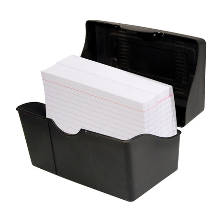 Store index cards and materials securely with this index card holder. Ideal for home and office use. Stackable design features built-in ridges keep cards standing. Recommended age 14+ years