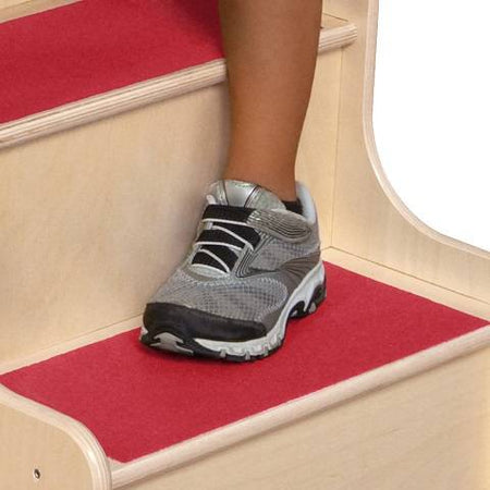 GREENGUARD® Gold certified. Our highly stable step-up unit helps you meet the hand washing requirements mandated in many states. Red slip resistant tread on each step insure safety. Constructed from 100% Plywood, and coated with our exclusive Tuff-Gloss UV finish. Fully rounded corners and edges for maximum safety. 28"H x 18"W x 15"D. Fully assembled. Lifetime warranty. Made in the U.S.A.