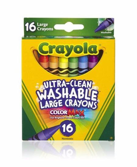 Crayola 16ct Large Washable Crayons. Washable formula is designed to wipe off most walls and non-porous surfaces with just warm water and a sponge.