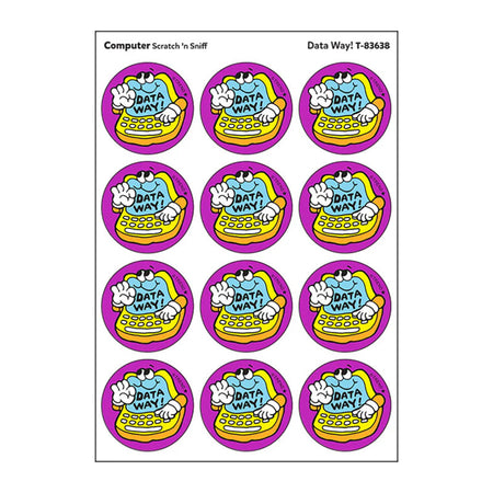 Get a whiff of this Data Way!, fresh computer-scented sticker! TREND Scratch n Sniff Stinky Stickers from the '80s are BACK! Fun to collect, trade, and celebrate accomplishments and special occasions. Collectors will be happy to spot the star symbol to distinguish TREND Retro Stinky Stickers from those printed in the 1980s. Each pack includes 2 sheets / 24 stickers, measuring 1-1/4" diameter. Ages 3 and up. Made in the USA. Recommended age 3+ years