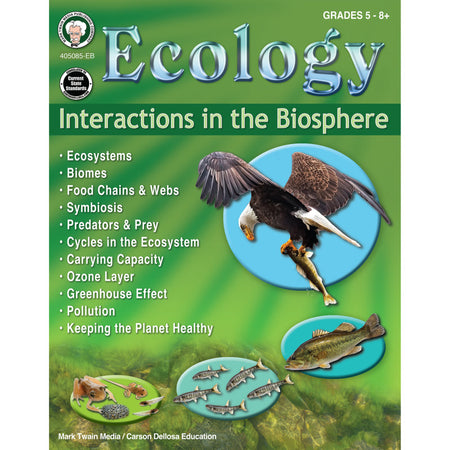 Help your 5th grade, middle school, or high school child build proficiency in biology with the activity-packed Mark Twain Ecology: Interactions in the Biosphere Biology Workbook! Science books are a great way for children to have a thorough understanding of ecology through focused lessons and practice. Students learn about environmental topics including acid rain, the greenhouse effect, and biomes, and will reflect on population studies through engaging lessons, research activities, and ecology projects. The 48-page science book is sized at about 8" x 11"—giving your child plenty of space to complete each exercise. Use the vocabulary study guide and unit test to track your child's progress. Designed by leading educators, Mark Twain Publishing Company specializes in providing captivating, supplemental books and resources in a wide range of subjects for middle- and upper-grade homeschool and classroom curriculum success. Recommended age 10-18 years