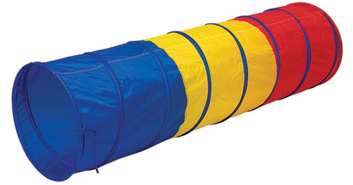 Take your Find and Seek game up a notch with this Find Me 6' Tunnel! This tunnel comes complete with a padded interior for comfortable playtime and stimulating colors to keep your kids engaged. This tunnel is lightweight, safe, and durable, and folds flat for space-saving storage. The collapsible design sets up in seconds and is designed for years of rugged play, making it perfect for playrooms, backyards, parks or the classroom!